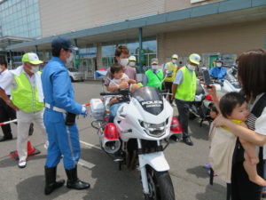 啓発を行いました。また、県警音楽隊・カラーガード隊による演奏演技、白バイへの乗車体験、チャレンジ号の体験など、市民の皆様