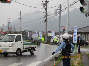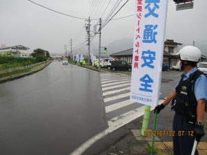 夏の交通安全やまびこ運動初日の7月22日に雨天にもかかわらず延徳支部が中野警察署員と合同で、人波作戦を行いました。