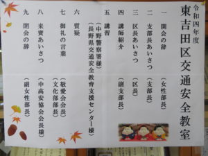 11月6日(日)、安協東吉田支部が高齢者等の交通安全教室を行いました。