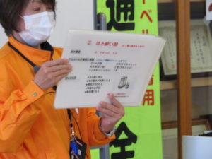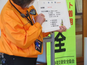 をお招きして笑いがある中でかつ真剣に講習を受けました。江本交通課長から、