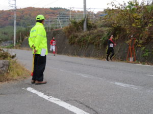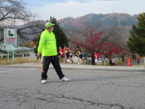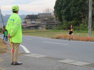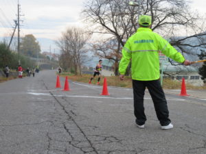 13チームが参加する中、最終ランナーが通過するまで交通誘導を行い、全選手無事に