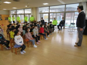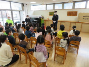 行いました。園児の皆さん、交通事故にあわないよう元気に遊んで下さい。