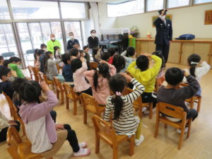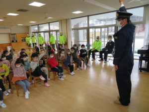 12月16日(金)、中野中央幼稚園年長組さんの交通安全教室を中野警察署と合同