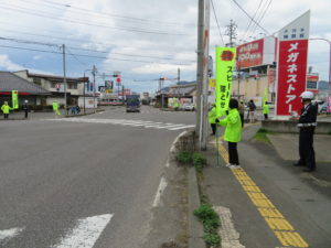 4月7日(金)の朝、子ども達の通学にあわせて交通事故防止の啓発活動を行いました。