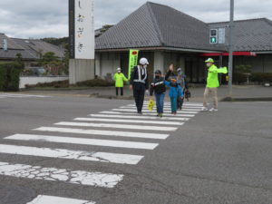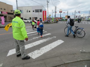 た。中高交通安全協会の竹内敬三会長も横断旗を手にして子ども達の横断を保護して
