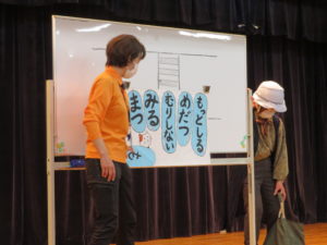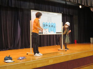 おばあちゃんが登場して、笑いを交えた交通安全教室となりました。