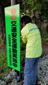 に交通事故防止のぼり旗、立て看板等を設置しました。