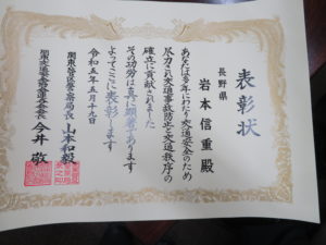 岩本信重常任理事が関東管区警察局長・関東交通安全協会連合会長連名による功労者表彰を受賞されました