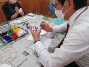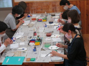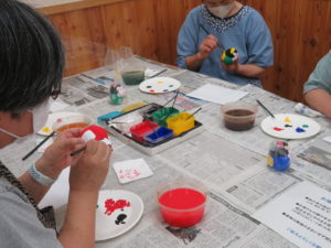 役立てています。参加した女性部の皆さんは、真剣な眼差しで絵付けを行ってい