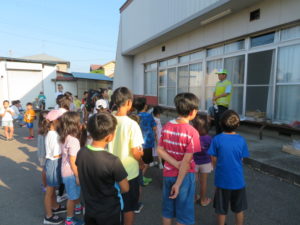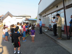 夏休み中に交通事故に遭わないようにとの思いで、交通安全教室を行い