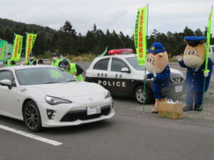 を用意しました。通行車両は、県外から来た行楽客で、啓発物品を交付すると、