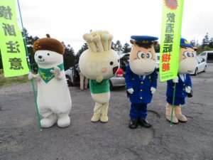 「おこみん(山ノ内町)」、「上州くん」、「みやまちゃん」が参加して、