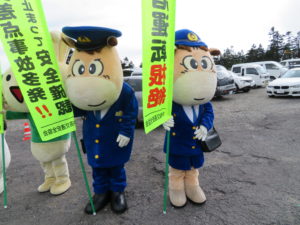 車を走らせて行きました。同活動には、着ぐるみの「えのたん(JA中野市)」