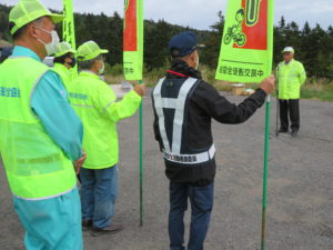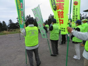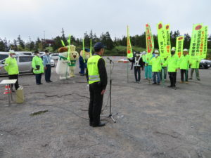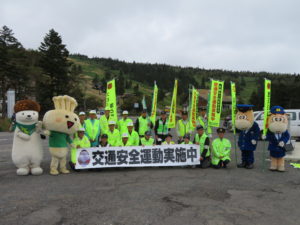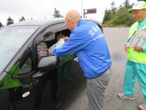 長野・群馬県境渋峠において交通指導所を開設し、行楽客等に交通事故防止を訴えました