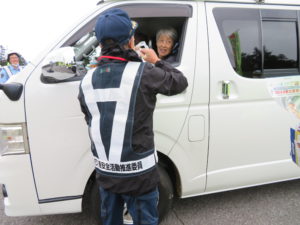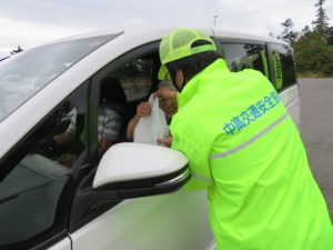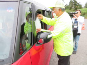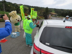 を用意しました。通行車両は、県外から来た行楽客で、啓発物品を交付すると、