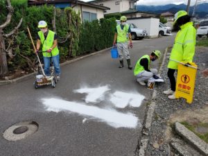 東吉田支部は、10月1にカーブミラーの点検清掃作業と白線引きを行いました。