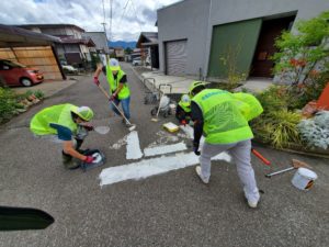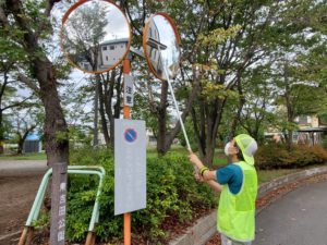 東吉田支部は、10月1にカーブミラーの点検清掃作業と白線引きを行いました。