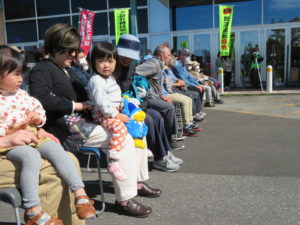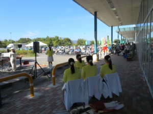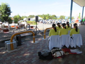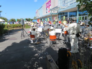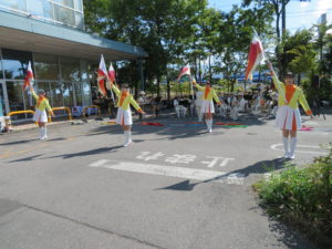 フラッグ演技を披露していただきました。来店者から音楽隊の演奏などを聞きた