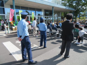 交通安全を願う啓発活動が終了後に長野県警察音楽隊の演奏とカラーガード隊の