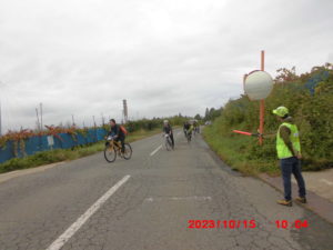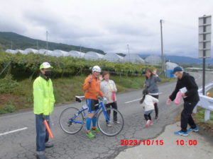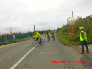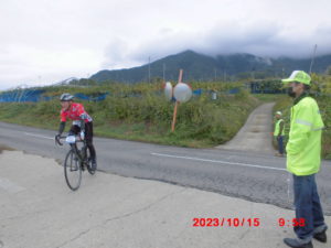 に乗り、その後高社山を登山して木島平村でゴールする)の交通誘導に