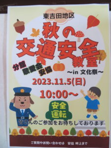 秋晴れの中で東吉田支部が高齢者を対象とした交通安全教室を5日(日)