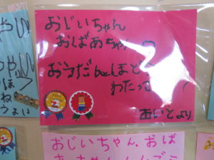 おじいちゃん・おばあちゃんに対して先月から作成したメッセージカード