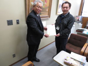 山ノ内町では、教育委員会学校教育坂口俊明係長に対し、中野市と同様に進呈し