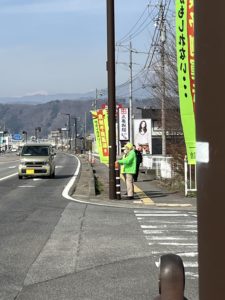 一本木支部は、休日の通行車両に対する交通安全啓発活動(人波作戦)を国道292号線