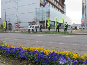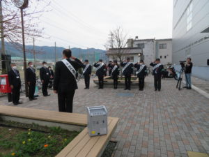 中野市交通安全議員団(芋川𠮷孝団長)は、4月11日(木)中野市役所前の
