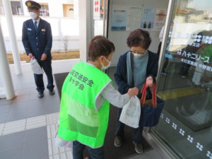 交通事故防止と電話でお金は詐欺と伝えなら熱心に啓発活動を行われました。
