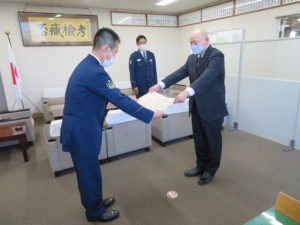 同日午後、中野警察署において村松朝生署長へ受賞報告を行い村松署長から