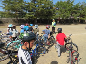た。子ども達は元気に自転車教室を受けていました。今後は親子そろって自転車に乗り危険な場所など