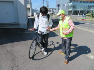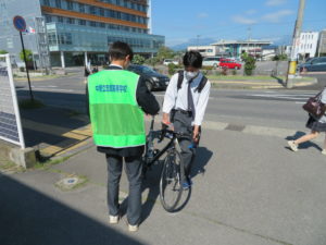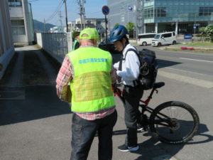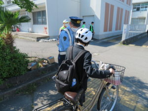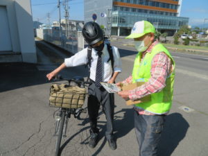 中野立志館高校自転車利用の通学生徒にヘルメット着用促進の啓発活動を行いました