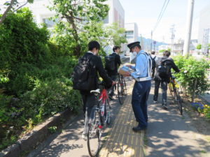 中野警察署・中高交通安全協会・立志館高校生徒会役員合同で自転車利用通学