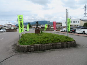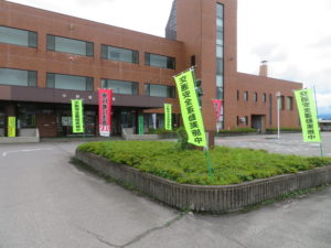 のぼり旗を掲出しました。朝から雨が降り北信地域振興局主催の人波作戦が中止