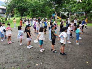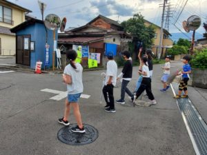 東吉田支部が地区ラジオ体操に集まった子どもに対する保護誘導活動を行いました