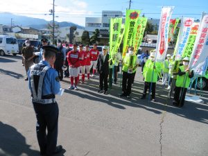 発活動の応援で参加し交通事故防止活動に貢献されました。小池振興局長は挨拶の