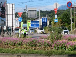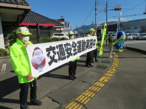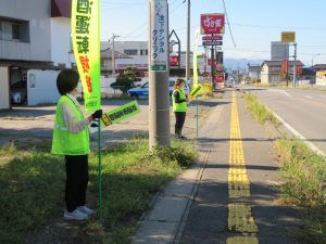 「秋の全国交通安全運動」の取組で中野市内江部信号交差点において交通事故防止
