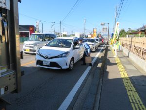 グランセローズの応援を受け江部信号交差点で交通指導所を開設しました