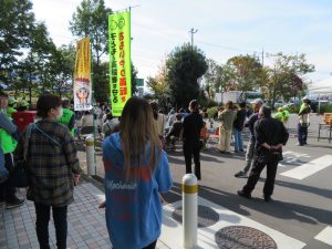 啓発品は約200個を用意しました。これからの季節は日が沈むと一気に暗くなり、