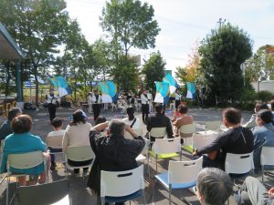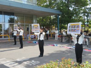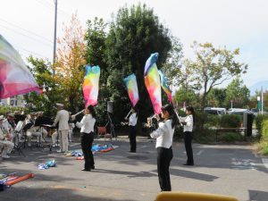 盛り沢山の内容に聴衆が頷きながら見学していました。また、カラーガード隊のフラッグ