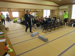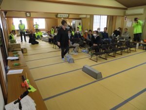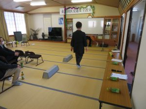 飲酒状態を体験できるゴーグルを着用して歩行体験をしました。はじめにゴーグルを