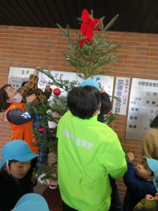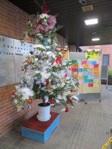 付け等してもらいありがとうございました。完成したツリーを見に来てください。