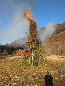 新年明けましておめでとうございます。13日に行われたどんど焼きにおいて
