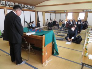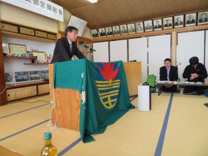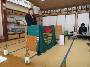 議事終了後に旧役員の退任挨拶と新役員の挨拶を行いました。新支部長に就任した