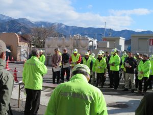 交通事故の現況、組織構成等の説明後、中野警察署辻裕一郎交通課長の指導で