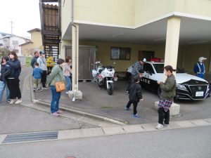 中高交通安全協会各支部も、運動期間中それぞれ独自の活動を行い、東吉田支部は新入学児童の歩行訓練(横断歩道の渡り方)および公民館で白バイ、パトカーの展示、交通支援センターの安全教室、中野警察署交通課長の講話が行われ、大勢の皆さんが参加されました。