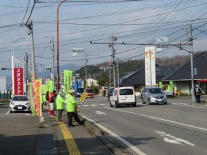 車両運転者等に対してのぼり旗による人波作戦(啓蒙活動)を実施しまし、