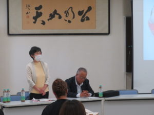 竹内会長から、お福 人形絵付け作業が女性部活動としていかに大切か、春原副会長兼女性部長からの挨拶。