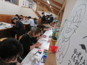 今年は、中野警察署長以下中野警察署ヤングドライバーズクラブ員の方が絵付け作業を行い、高齢者に対する交通安全を願いながら作業を一緒に行いました。